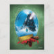 Icónica escena de llegada al tren Polar Express en un marco vacacional con billete de tren.