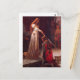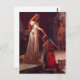 ¿No es esto una pintura espléndidamente romántica? Fue creado en 1901 por el pintor inglés Edmund Blair Leighton. Esta es una ceremonia de doblaje, que podría ser llevada a cabo por un caballero o una dama. La espada simbolizó la forma de la cruz. Los dos bordes de la espada sirvieron para recordar al futuro caballero que la justicia y la lealtad eran los dos aspectos del poder del caballero. Si la ceremonia tuvo lugar en la iglesia, el futuro caballero juró seguir cuatro mandamientos: nunca consentir mentiras o traición, siempre honrar a las mujeres y estar dispuesto a servirlas, ir a misa todos los días y ayunar los viernes. Entonces el caballero inducido recibió un elogio del patrocinador, que le golpeó el cuello o el hombro tres veces con el borde plano de la espada. ¡Entonces podría recibir un compañero, un golpe de mano ligero o un puñetazo! El galardón y el compañero tenían la intención de asegurarse de que el nuevo caballero nunca olvidara la experiencia de doblar. (¿Quién podría?) La primera vez que vi esta pintura fue con una tarjeta de saludo. Captó tanto mi imaginación que me quedé allí mirando por mucho tiempo. Su maravilloso vestido y su hermoso cabello rojo, y su círculo dorado y perla en su cabeza. Y el caballero que se arrodilló ante ella en una postura humilde y devota. Estaba perdido en las posibilidades románticas. ¿Es una dama o una reina? ¿Son amantes? Finalmente, mi marido me tomó de la mano y me tuvo que sacar de la tienda. Por supuesto que volví y compré la tarjeta.