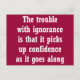 Si te molesta la estupidez (¿y quién no?), entonces apreciarás el sentimiento detrás de esta línea humorística: "El problema con la ignorancia es que recoge confianza a medida que avanza".