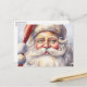 Una postal con un ilustracion de estilo vintage. Un retrato de Santa con su gran barba blanca usando su tradicional sombrero tradicional de Santa Claus.