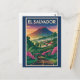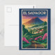 Postal El Salvador Volcán Ilustracion Viaje Art Vintag