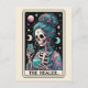 Envía energía poderosa y positiva con la tarjeta postal inspirada en 'The Healer' Tarot. Esta impresionante impresión de arte gótico presenta una figura de esqueleto estilizada que sostiene símbolos de renovación y fuerza, contra un fondo cósmico oscuro.