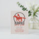 ¡Yee haw! Es hora de celebrar una última vez antes de que esta vaquera se case. Es la última cabalgata para la novia, también conocida como despedida de soltera. El diseño presenta a una vaquera corriendo en su caballo en un marco de cuerda con texto western estilizado debajo. Perfecto para un evento temático del oeste o country. Disponible en rojo oxidado, rosa intenso y turquesa brillante. Productos a juego disponibles.