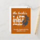 ¡¡¡Sí, jaja!!! ¡Es hora de celebrar una última vez antes de que esta vaquera sea golpeada! Es el último viaje de la novia antes de que se siente, también conocida como soltera o fiesta de gallina. Design presenta una carrera de vaquera a su caballo con estadios y textos de escritura afligidos de occidente y gordos. Perfecto para un evento de temática occidental o nacional. Mostrado en naranja quemado. También disponible en una combinación de rosa, azul y rojo de la bandera estatal y marrón. Productos a juego disponibles.