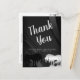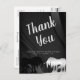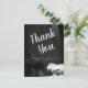 Una hermosa tarjeta postal de agradecimiento con tema de boda de unicornio cuadrado. El diseño incluye los nombres de la novia y el novio y un unicornio negro y plateado. Mostrado en negro y plateado con un fondo de remolino negro elegante. Personalizable con los detalles de agradecimiento de su boda. Diseñado por Robin D. Cox.