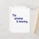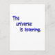 Este lema filosófico te recuerda que incluso cuando se puede pensar que nadie está escuchando, siempre hay un poder mayor que está prestando atención. El gráfico es de color azul y gris y dice: El Universo está escuchando. Este diseño que invita a la reflexión hace un gran regalo para la gente que cree en el karma y el poder del pensamiento positivo. Personalizar este gráfico agregando su propio mensaje o imagen única. El color de fondo también se puede personalizar en la mayoría de los productos.