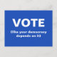 La postal con un fondo azul que diga voto (como su democracia depende de ella).
