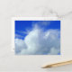 Una postal con una atractiva foto en el cielo, lana de algodón como nubes contra los vivos cielos azules.