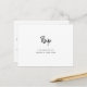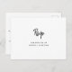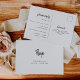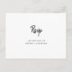 Estas postales elegantes y minimalistas de respuesta boda presentan tipografía de escritura moderna y texto limpio, sans serif para un diseño simple y elegante en blanco y negro que le encantará. Hay espacio para añadir a sus huéspedes opciones para la elección de comidas en la entrada o de cenas. El texto se mantiene alejado de los bordes superior e inferior de la parte posterior de la postal, para reducir la posibilidad de que esté cubierto en la parte superior e inferior por las marcas postales.