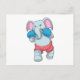 Postal Elefante boxeando con guantes de boxeo