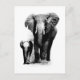 Postal Elefante BW y elefante bebé