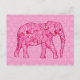 Dibujo digital de patrones mixtos de un elefante ricamente embellecido contra un fondo de baldosa arabesco - tonos rosas desde rosa pálido a fucsia profunda