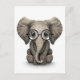 Postal Elefante lindo bebé con lentes de lectura blanco