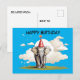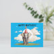 Este es un diseño generado por IA. Quería un elefante con un sombrero de cumpleaños en una pradera y eso es lo que obtuve. Pensé que un fondo azul claro para el elefante se veía bien. En la parte posterior puse el texto Entregado desde:, Enviar a: