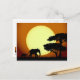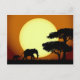 Este ilustracion muestra a una madre elefante junto con su bebé elefante, caminando por la sabana africana durante la puesta de sol.