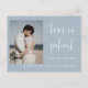 Esta tarjeta postal de invitación a la invitación para el retiro de un boda presenta una caligrafía elegante y una tipografía simple de sans serif con una foto sobre un polvoriento fondo azul para un limpio aspecto minimalista y moderno, que es una hermosa manera de informar sobre tu próximo boda. La sencillez de este diseño le da un toque de elegancia a sus tarjetas de invitación boda. Funciona bien con muchos temas bodas y sin duda una gran adición a su boda. Solo personalizar los nombres y la redacción en unos pocos pasos fáciles y personaliza la postal de invitación con tu foto de la pareja feliz para darle a tu postal un agradable toque personal. Nota: La elegante caligrafía de la frase "El amor es paciente pero no lo somos" y "nada de fantasía solo amor" junto con las líneas y otras obras de arte y elementos gráficos no pueden editarse, eliminarse ni moverse. Están arreglados.