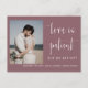 Esta tarjeta postal de invitación a la invitación para el retiro de un boda presenta una caligrafía elegante y una tipografía simple de sans serif con una foto sobre un polvoriento fondo morado para un limpio aspecto minimalista y moderno, que es una hermosa manera de informar sobre tu próximo boda. La sencillez de este diseño le da un toque de elegancia a sus tarjetas de invitación boda. Funciona bien con muchos temas bodas y sin duda una gran adición a su boda. Solo personalizar los nombres y la redacción en unos pocos pasos fáciles y personaliza la postal de invitación con tu foto de la pareja feliz para darle a tu postal un agradable toque personal. Nota: La elegante caligrafía de la frase "El amor es paciente pero no lo somos" y "nada de fantasía solo amor" junto con las líneas y otras obras de arte y elementos gráficos no pueden editarse, eliminarse ni moverse. Están arreglados.