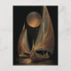 A sophisticated and elegant minimalist illustration featuring two Viking longships with large, patterned sails, rendered entirely in intricate gold lines and geometric patterns. The ships appear to be sailing on calm water with stylized reflections, set against a dark, charcoal-gray background. Above them, a large, glowing full moon or sun is also detailed with a complex golden pattern.