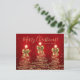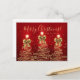 Elegant Merry Christmas / Happy Holidays "Postcard" Gold Trees with bows on red with a custom text.