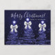 Elegant Merry Christmas / Happy Holidays "Postcard" Navy Blue Trees with bows.