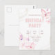 Postal Elegant Pink Butterfly Birthday Party Invitation