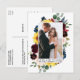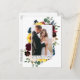 Elegante acuarela rosa burgundy floral y verde novio y novia amor y agradecimiento tarjeta postal de agradecimiento incluye rosas burgundy y rosadas, flores azules, girasoles, verde botánico y hojas de eucalipto.