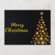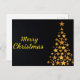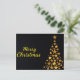 Postal Elegante Árbol de oro Feliz Navidad en negro
