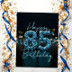 Postal Elegante Azul Safiro y Negro Cumpleaños 85