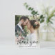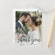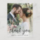 Esta elegante y moderna tarjeta de agradecimiento para bodas de guiones es perfecta para enviar a cualquiera que haya celebrado su gran día con usted o enviado un regalo. A todo el mundo le encantará tener una hermosa postal con tu foto favorita de boda. Es muy fácil hacer el tuyo propio. Simplemente seleccione Personalizar esta plantilla, cargue su foto vertical y escriba su información. En pocos segundos verás tus únicas y magníficas cartas de agradecimiento.
