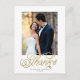 Hermosa tarjeta con Gracias en un guion con remolinos. Faux Gold Boda Foto Gracias Postcard . Personalizar con sus fotografías y texto. Utilice las instrucciones de la plantilla o haga clic en personalizar y tenga más libertad para personalizar su tarjeta. Foto de ejemplo solamente. Elke Clarke © ©