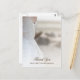 Expresa tu más sincero agradecimiento con esta elegante tarjeta de agradecimiento con fotos de la ducha de novia con una hermosa imagen de la parte de atrás de un vestido de boda encorvado contra un telón de fondo de una romántica playa de arena marina. Personalice agregando el nombre de la novia para ser y un mensaje especial de agradecimiento.