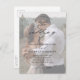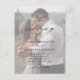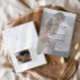 Elegante invitación de matrimonio fotográfico con código QR que incluye elegantes detalles de caligrafía de escritura y texto clásico superpuesto en una foto vertical retrato en el frente. La parte de atrás tiene una foto de sangrado completo y detalles de RSVP. Haga clic en el botón de edición para personalizar de este diseño.