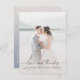 Elegante Boda Ombre, Blanco Fuera De Blanco Y Azul Dusto. Gracias A Las Postales. Este boda moderno o cualquier evento Gracias El diseño de la postal es sencillo y mínimo, con un color oscuro de color oscuro atenuado y tipos de letra de caligrafía característicos a la moda. Añade tu fotografía de boda personalizada al frente para que tenga un aspecto totalmente personalizado. Se muestra en la nueva paleta de color Boda. La colección de Bodas Mínimos de Ombre hará que su boda sea memorable y hermosa. Para ver más, busque las colecciones de bodas 2022 de Moda Paperie para ver todos los diseños de moda y colores bodas para este año.