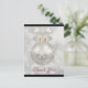 Tarjeta de agradecimiento con un diseño mágico de vacaciones. Con una bola de Navidad de plata con decoraciones de copos de nieve y terminada con un bonito lazo de plata. El fondo es una ilustración de luces bokeh de plata con estrellas elegantes esparcidas por todas partes.