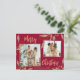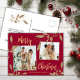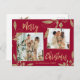 Elegante, moderno, rojo y botánico dorado 2 Collages de fotos de postales navideñas de ferry. Esta festividad, caprichosa plantilla de dos (2) foto de postales de vacaciones cuenta con un collage de fotos de bonito, hojas botánicas de Relieve metalizado de oro falso, winterberries y dice ¡Feliz Navidad! El texto de bienvenida de "Feliz Navidad" está escrito en un hermoso tipo de letra tipográfica con letras a mano sobre rojo borgoña o a bordo del fondo. Tarjeta postal de bienvenida para su familia y amigos en esta temporada de Navidades y feriados.