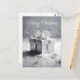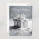 Captura la magia de las vacaciones con este elegante diseño con una caja de regalo de plata rodeada de brillantes copos de nieve. Encima, el texto de plata brillante "Feliz Navidad" agrega un toque festivo, Celebra la temporada con elegancia atemporal y un encanto invernal!
