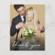 Esta elegante tarjeta de agradecimiento de boda con caligrafía moderna y foto es una plantilla de "tarjeta de agradecimiento de boda" que presenta una foto en la parte frontal con el texto. Para una personalización más avanzada de este diseño, haga clic en el enlace Personalizar más para cambiar la fuente, el tamaño y el color
