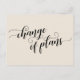 Esta sencilla tarjeta le permite elegir su color de fondo (incluso si quiere un cambio) mientras disfruta de este magnífico tipo de letra. La parte frontal dice "cambio de planes" usando un guión de bonito con remolinos y olas. La parte posterior incluye marcadores de posición de plantilla para sus detalles con palabras de acento coincidentes que incluyen el tipo de letra de caligrafía. Utilice estos campos de plantilla para agregar sus datos personales y cambiar mi redacción de borrador para adaptarlo a sus necesidades y situación. // 99 //