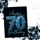Postal Elegante Chic Zafiro Azul y Negro 70 Cumpleaños