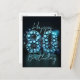 Ochenta años, ¡una historia digna de celebrar! Esta tarjeta postal de cumpleaños número 80 personalizable de nuestra tienda no es solo una tarjeta, es un lienzo para recuerdos, logros y deseos sinceros. El diseño presenta un estilo atrevido y elegante que muestra un '80' brillante adornado con gemas azules que parecen brillar con la sabiduría y las experiencias de ocho décadas. Contra un sofisticado fondo oscuro, este detalle radiante es el tipo de atracción que dice mucho sin pronunciar una palabra.