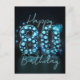 Ochenta años, ¡una historia digna de celebrar! Esta tarjeta postal de cumpleaños número 80 personalizable de nuestra tienda no es solo una tarjeta, es un lienzo para recuerdos, logros y deseos sinceros. El diseño presenta un estilo atrevido y elegante que muestra un '80' brillante adornado con gemas azules que parecen brillar con la sabiduría y las experiencias de ocho décadas. Contra un sofisticado fondo oscuro, este detalle radiante es el tipo de atracción que dice mucho sin pronunciar una palabra.