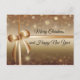 Tarjeta postal elegante con fondo brillante y reluciente dorado, con cinta dorada y texto... Feliz Navidad... Puede personalizar fácilmente con su elección de texto.