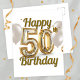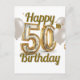 Postal Elegante Confeti y Globos de Oro Cumpleaños 50