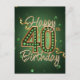Postal Elegante Cumpleaños 40 en Verde Esmeralda y Dorado