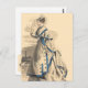 pintura de época azul y blanca con una encantadora dama vestida con vestimenta de estilo victoriano en la orilla del mar y despedida de un barco en el mar, lleva puesto un gorra blanco bonito con flores azules y velo, vestido beige con cintas azules y botones azules en un estilo decorativo de rayas, y ondea una gran bufanda blanca en la brisa marina mientras el gran bote se va hacia un océano con fuertes olas en la ventosa brisa del océano mientras la señora con un largo vestido victoriano mira al barco lejano en el mar