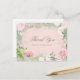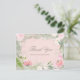 Gracias por una hermosa ducha de novia con esta elegante tarjeta floral rosa gracias a una romántica frontera floral rosa suave cubierta con encantadora escritura francesa. Personalice agregando el nombre de la novia.