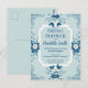 Postal Elegante ducha de boda floral de chinoiserie azul