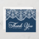 Postal Elegante encaje de brocado botánico azul gracias