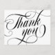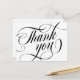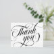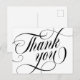 Tarjeta de agradecimiento con un gracias giratorio impreso en una hermosa escritura negra.