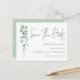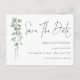 Elegante Guión De Código QR Eucalyptus Guarda La Fecha. Una postal conveniente para pedir a sus invitados que guarden su fecha. Agregue su código QR al sitio web del boda de la parte posterior reemplazando el código QR del ejemplo, o simplemente elimine este código si no es necesario. Un diseño botánico minimalista con Save The Date en un guión moderno.El resto del texto que puedes personalizar fácilmente. Los colores de texto y fondo se pueden cambiar si se desea a través de la opción personalizar adicional.